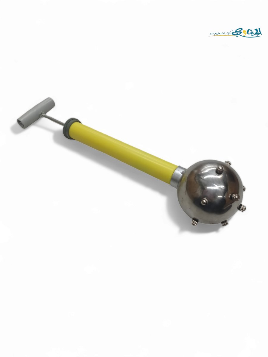 * توزيع الضغط الهيدروستاتيكي: عند ضغط المكبس العلوي، يندفع السائل من جميع الثقوب الموجودة على سطح الكرة بنفس الارتفاع والقوة.