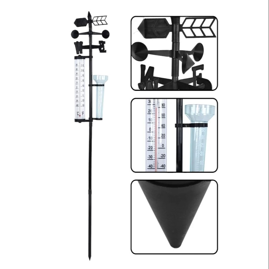 * تُعرف هذه المجموعة من الأدوات عادةً باسم محطة الأرصاد الجوية المنزلية (Weather Station)، وهي جهاز يدمج وظائف متعددة لمراقبة حالة الطقس في مكان واحد، وغالباً ما تُستخدم في الحدائق أو المزارع.