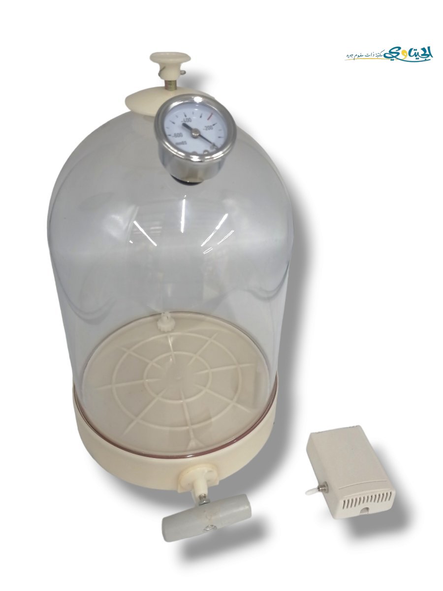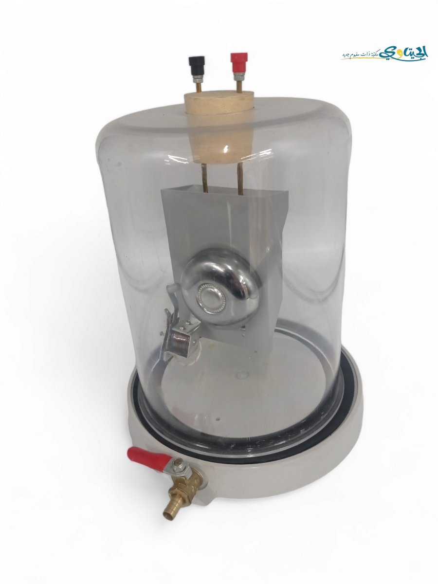 - مضخة التفريغ (Vacuum Pump): تُوصل بالناقوس لسحب الهواء من الداخل.