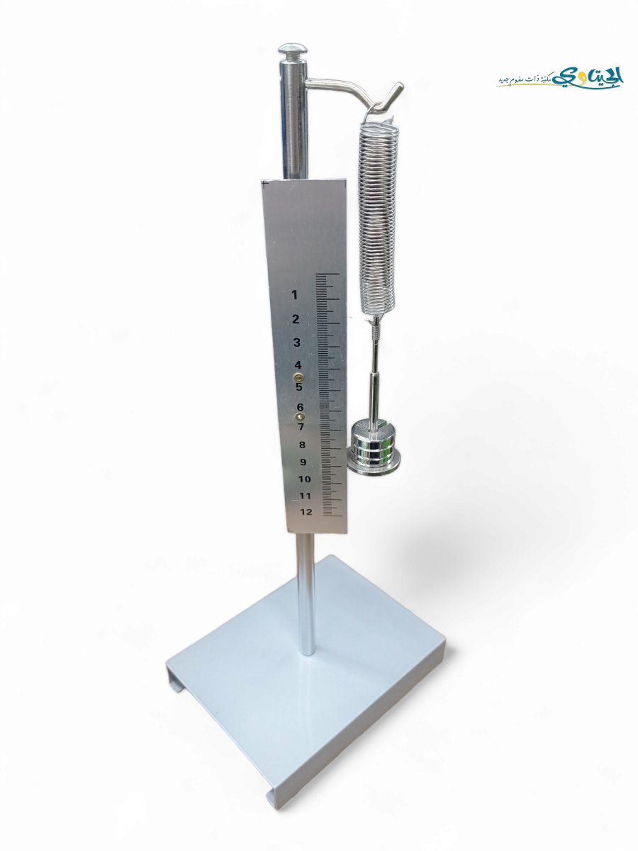 - كفة تعليق وأثقال: تُعلق في أسفل الزنبرك لتمثّل "القوة" المؤثرة.