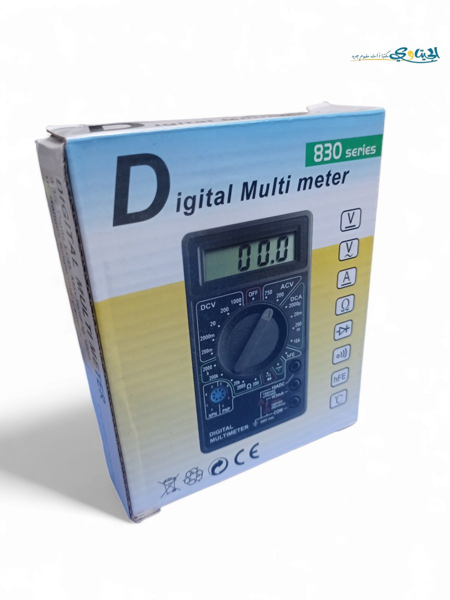 Ω (المقاومة): لقياس قيمة المقاومات الإلكترونية أو التأكد من سلامة سلك (إذا أعطى قيمة قريبة من الصفر فالسلك سليم).