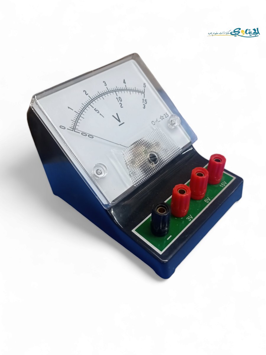 - الفولتميتر هو جهاز أساسي يُستخدم لقياس فرق الجهد الكهربائي (الفولت) بين نقطتين في الدائرة الكهربائية، سواء للتيار المستمر (DC) أو المتردد (AC). يتميز بدقة عالية، ويتم توصيله دائماً على التوازي مع المكون المراد قياس جهده.
