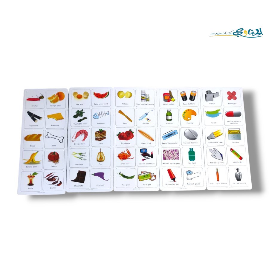 - يتعلم الطفل على المواد القابلة للتدوير و المواد غير القابلة للتدوير